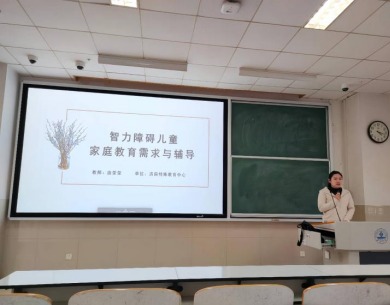 11月19日,庞荣荣(济南特殊教育中心一级教师)老师在11教3502开展《智力障碍儿童家庭教育》专题讲座,她从一封家长感谢信引入,围绕智力障碍儿童家庭和家庭教育辅导两大主题展开,通过多样化案例,让学生们真实感受智力障碍儿童的家庭与成长,同时领会特殊教育教师的幸福,明确自己将来的家庭教育“专家”身份及与家长的伙伴关系。