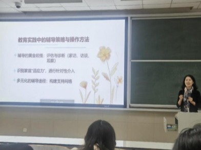 11月12日,《视觉障碍儿童家庭教育》专题讲座在11教3502开讲,王德萍(济南特殊教育中心高级教师)老师围绕视障儿童家庭教育的冲击、家庭教育两大需求和多元化辅导路径进行介绍,她以爱为起点基于30多年从教经验进行真实案例分享,让学生全面认识视觉障碍儿童家庭教育,积极引导他们用爱、真诚、耐心来为视觉障碍儿童家庭教育服务。