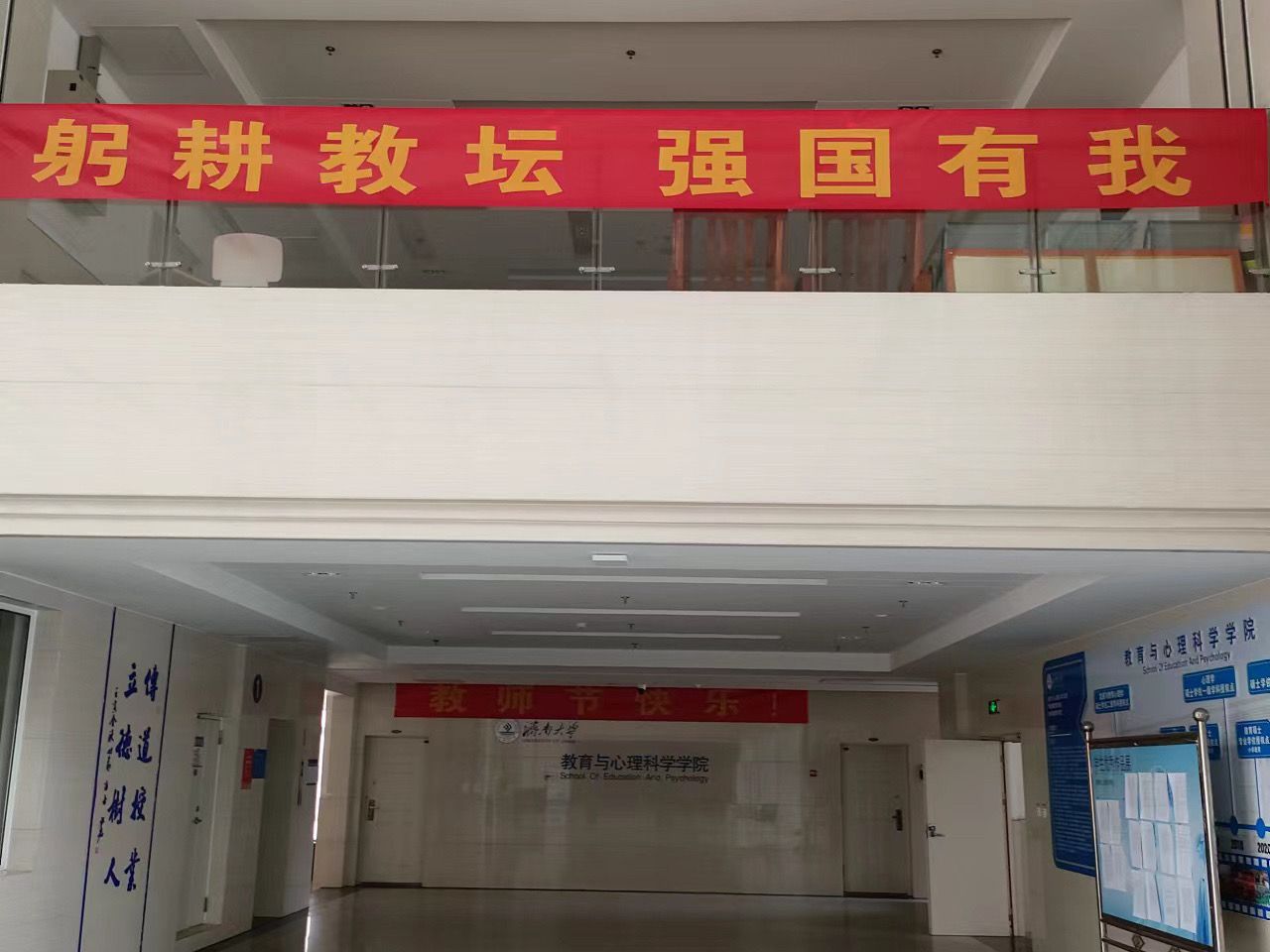 一楼悬挂“躬耕教坛,强国有我”和“教师节快乐”两个横幅,在全院弘扬尊师重教风尚,做好师德师风建设。全体教职工将志存高远、严谨笃学、勇于创新、奋发进取,为学校、太陽城app