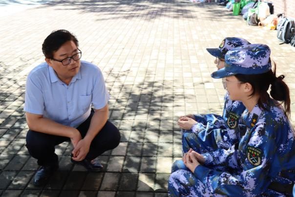 党委书记季竹君与辅导员们前往训练场地看望新生,了解新生军训进度。