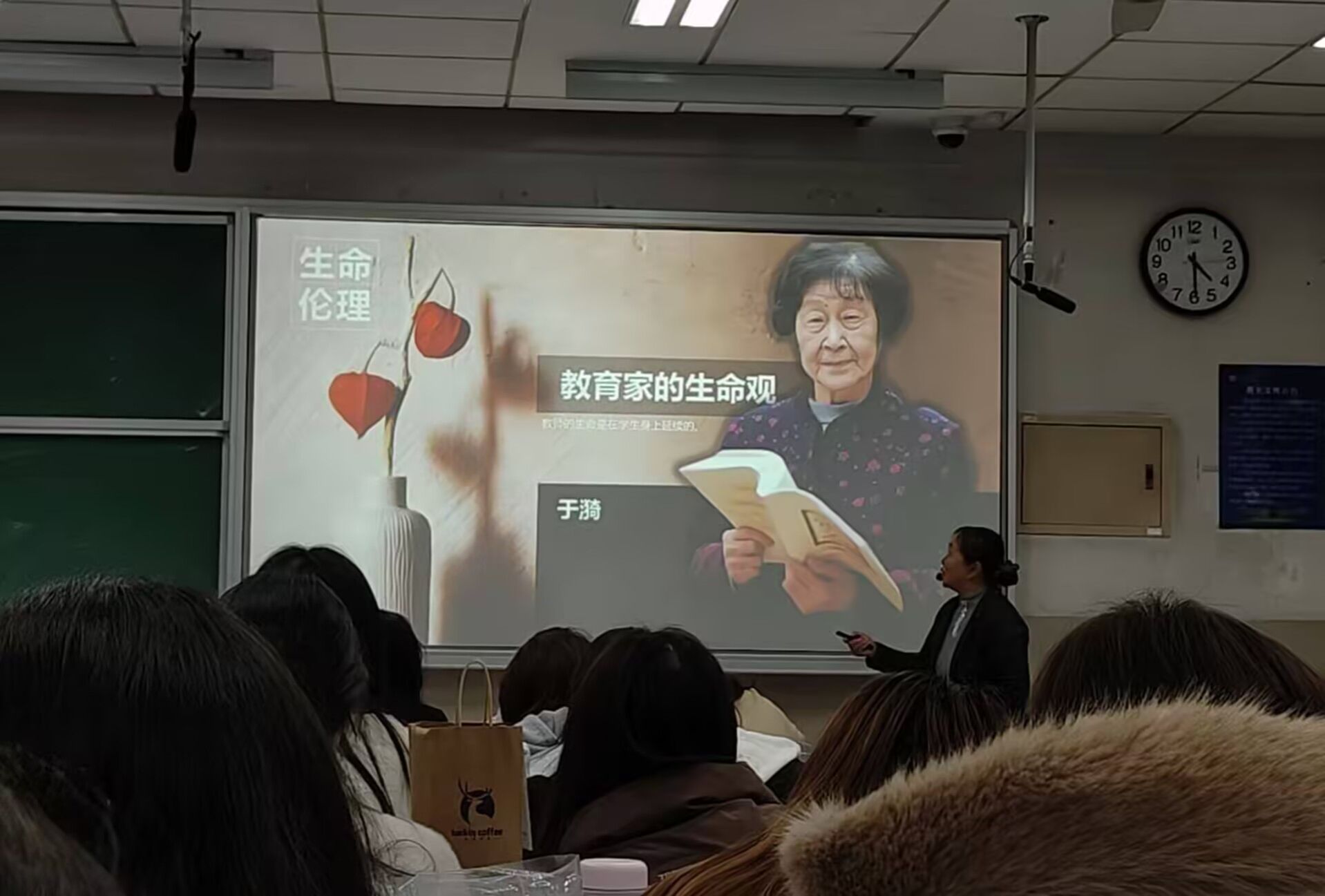宣讲聚焦高铭暄、于漪、卫兴华、叶圣陶四位教育家的生命伦理与教育思想。高铭暄“法律捍卫生命尊严”的理念,引导学生认识到教育的底线是对个体权利的尊重,筑牢生命伦理与教育伦理的认知根基;于漪“生命在学生身上延续”的箴言,生动诠释教师职业的精神价值,唤醒学生对“传道授业解惑”的初心认同;卫兴华“学术生命联结家国命运”的追求,将个人成长与国家需求紧密结合,厚植学生的教育家国情怀;叶圣陶“教是为了不教”的教育智慧,引导学生把握教育本质,树立以学生发展为中心的育人理念。